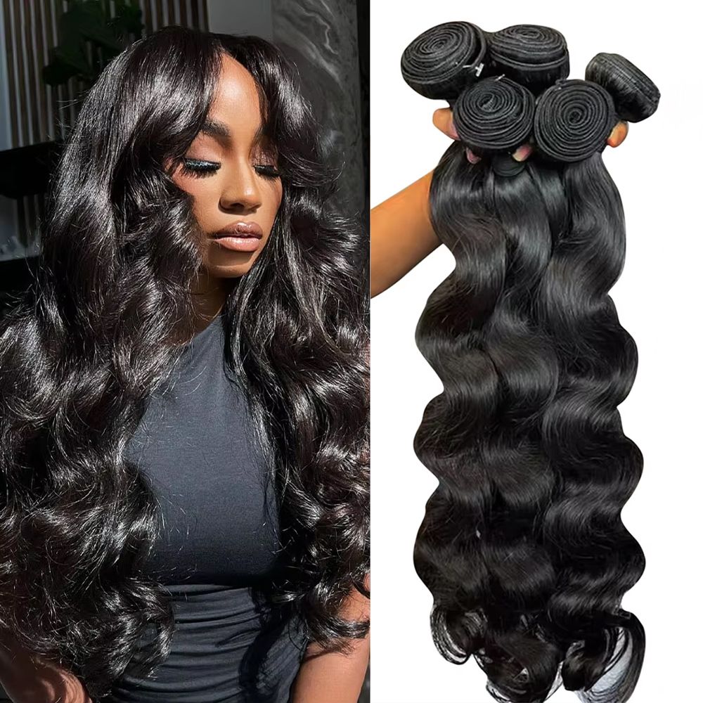AngelBella AngelBella Wholesale High Quality 40 Inch Natural Black Color Double Drawn Body Wave Human Hair Bundles for Women