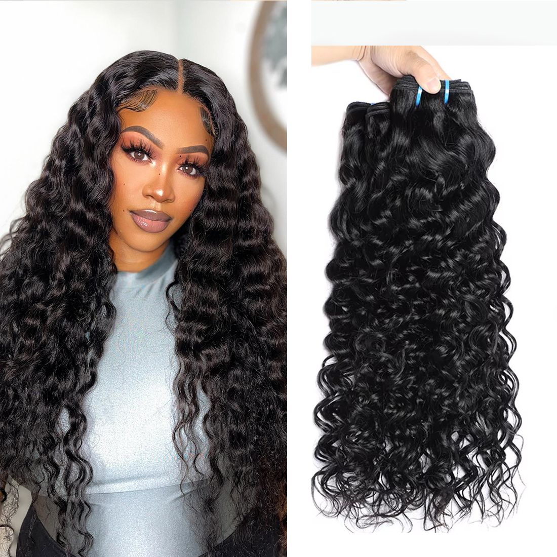 AngelBella Wholesale 40 Inch Natural Black Double Drawn Water Wave Brazilian Virgin Human Hair Bundle for Women